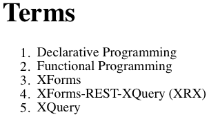 element <term>. The second is an XQuery function that shows an individual term.