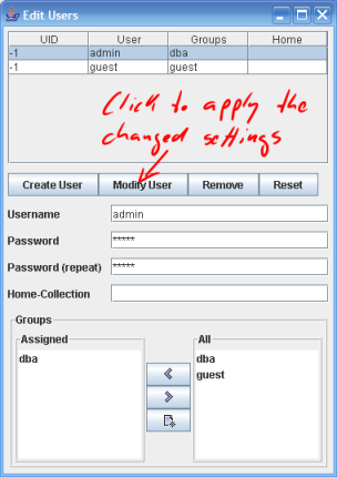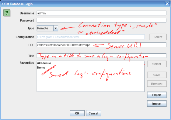 Once the Graphical Client is launched, you will see the "eXist Database Login" window.