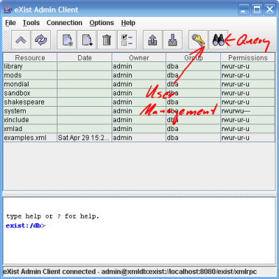 Windows and Linux users: Click the eXist-db icon in the taskbar and choose the Open Java Admin Client menu entry.